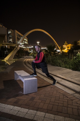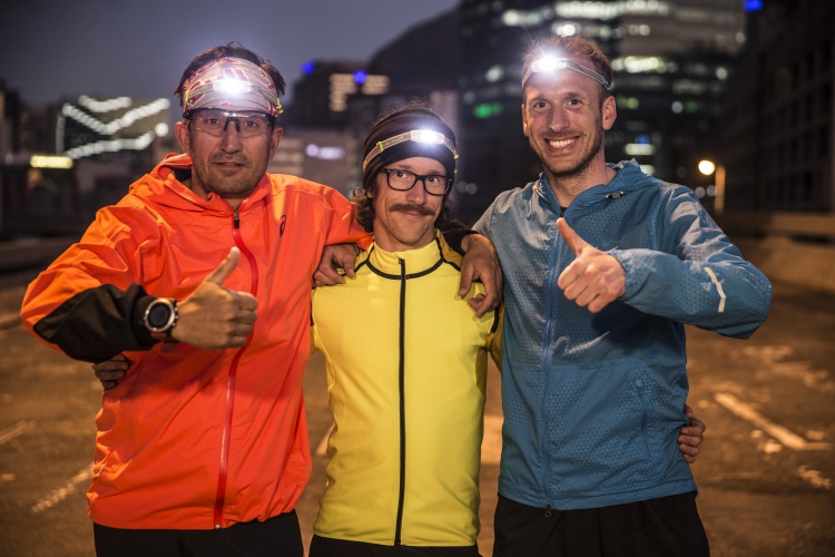 Mit Jan Fitscher auf seine Lieblings-Nachtlauf-Strecke Auch Florian Neuschwandner ist Nachtläufer Auf der Promenade die nächtliche Stimmung genießen Mitten im Herz der Stadt und dennoch angenehm ruhig v.l.n.r.: Christian Schiester, Florian Neuschwandner und Jan Fitschen vereint für Ledlenser unterwegs Beste Stimmung unter den 3 Testimonials Zum Abschlussd darf dehnen natürlich nicht fehlen