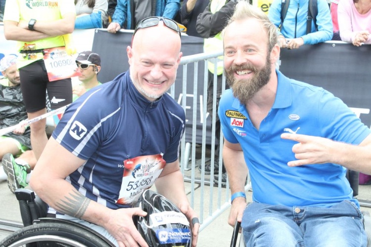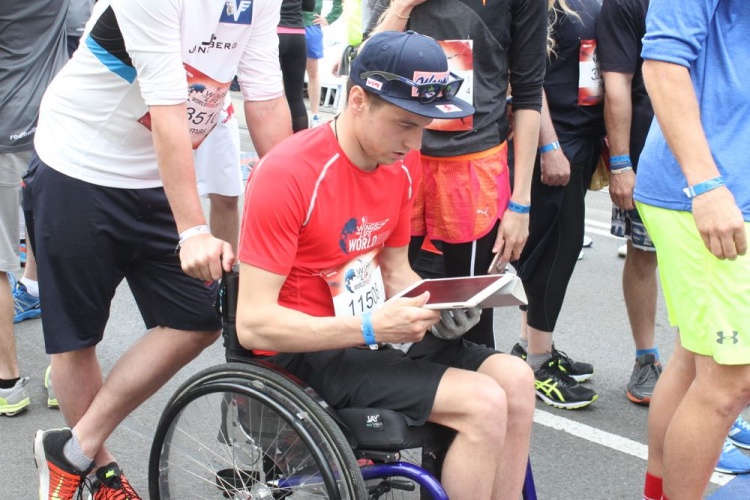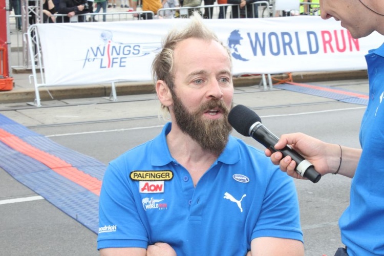 Aron Anderson - Er ist für die gefahren, die es nicht können. Von der Hüfte abwärts gelähmt, holte er den Sieg beim Wings for Life World Run am 7. Mai 2017 in einem "Alltags-Rollstuhl". Das Catcher-Car fuhr am Renn-Ende bereits 35km/h bevor es in Dubai den Rollstuhl-Fahrer Aron Anderson (SWE) bei KM 92,1 einholen konnte.