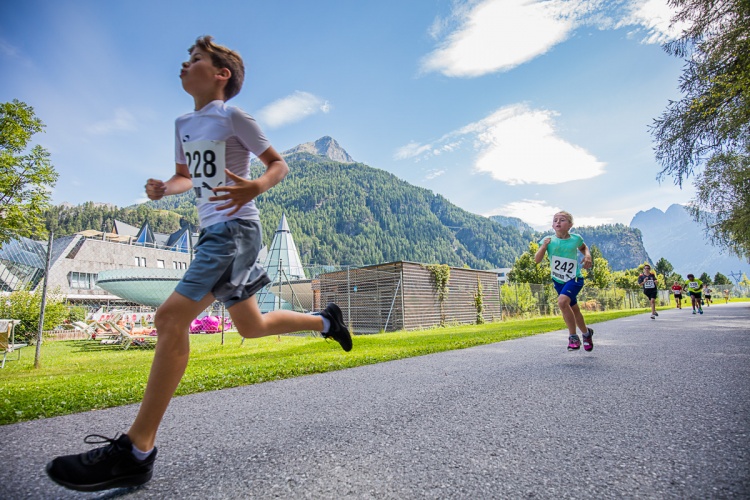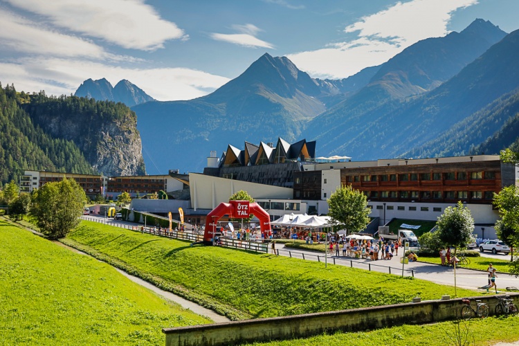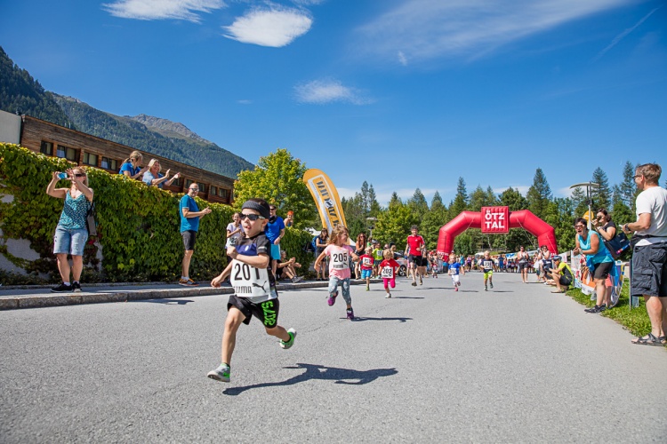 Am Fuße der mposanten Gipfelszenerie des Ötztals Die Laufstrecke führt zumeist auf Feld- und Wiesenwegen Umgeben von steinernen Majestäten Auch der Nachwuchs kommt auf seine Kosten Start und Ziel liegen direkt beim Aquadome Laufen in der herrlichen Naturarena von Längenfeld