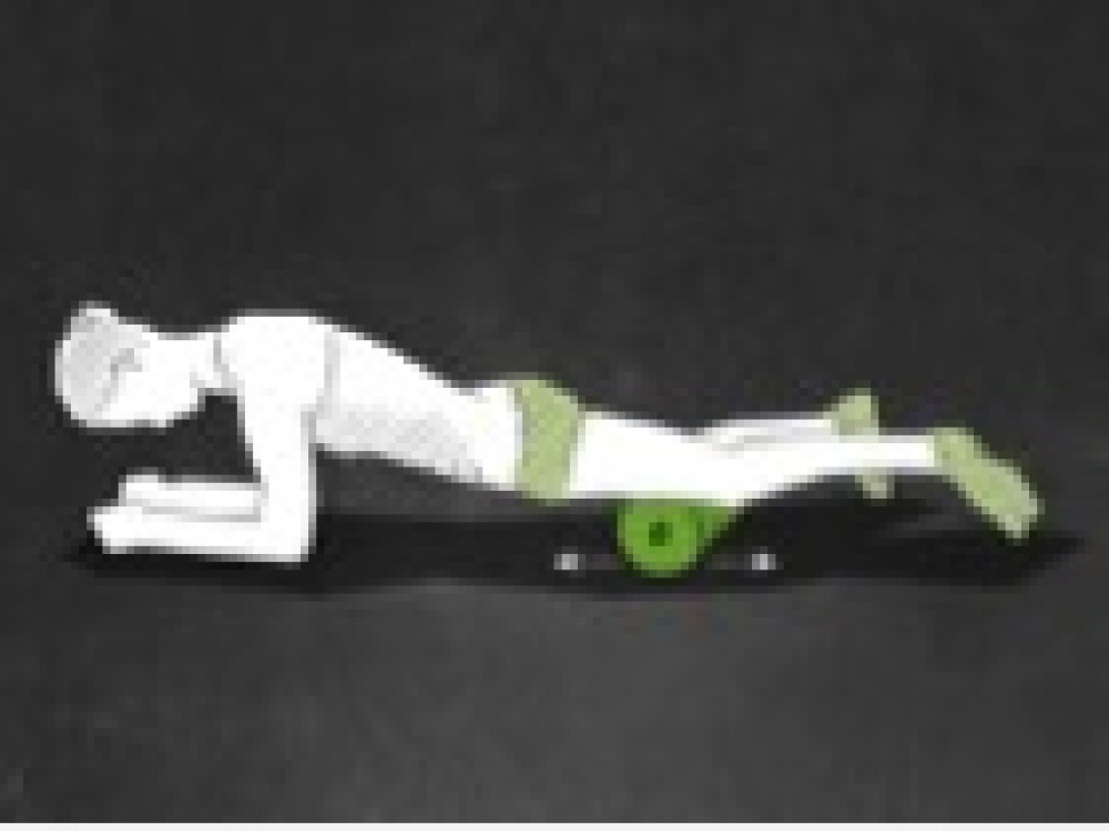 Rolle deinen Körper durch Beugen und Strecken der Beine auf und ab. Über aktiven Druck mit dem Oberkörper gegen die MINI lässt sich die Intensität variieren. Wechsle nach etwa 30 Sekunden die Seite.