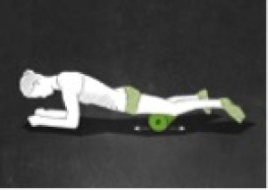 Starte im Unterarmstütz. Winkle das linke Bein zur Seite an und platziere die BLACKROLL® unter dem linken Oberschenkel, knapp oberhalb des Knies.