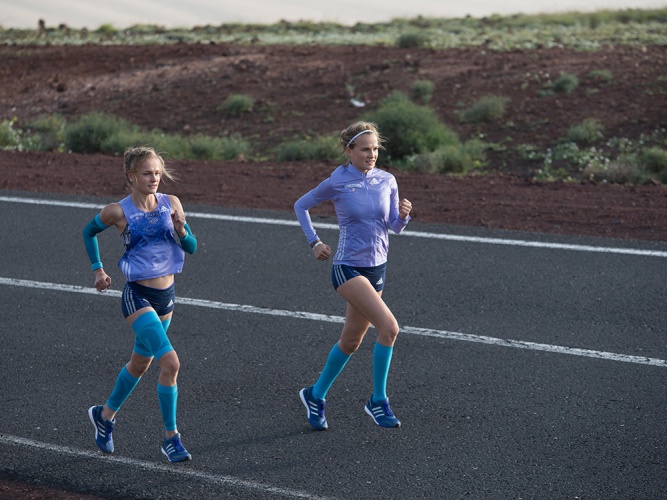 Viele Läufer und Profis, wie die Hahner-Zwillinge, bevorzugen Waden-Sleeves oder Kompressionsstrümpfe vor allem auch nach dem Wettkampf. Denn durch die angeregte Durchblutung wird der Abtransport von sauerstoffarmem Blut unterstützt und Stoffwechselprozesse werden positiv beeinflusst. So bist du schneller wieder fit und die typisch schweren Beine nach einem Marathon fühlen sich angenehmer an.
