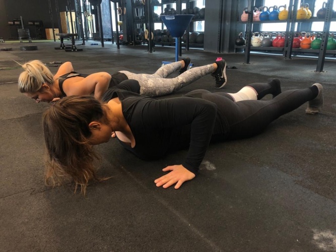 Also "umfallen", mit der Brust den Boden berühren, aufspringen und BEIDBEINIG so weit wie möglich springen, um wieder "umzufallen" und das nächste Burpee zu machen. Ein Referee beobachtet das Ganze, solltest du nicht korrekt unterwegs sein, bekommst du nach dem zweiten Fehler eine Strafe. - oder du krallst dir zwei Gewichte